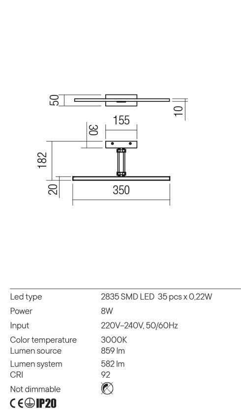 Aplică pentru interior echipată cu LED SMD, structură din metal vopsită negru mat, dispersor din policarbonat satinat.