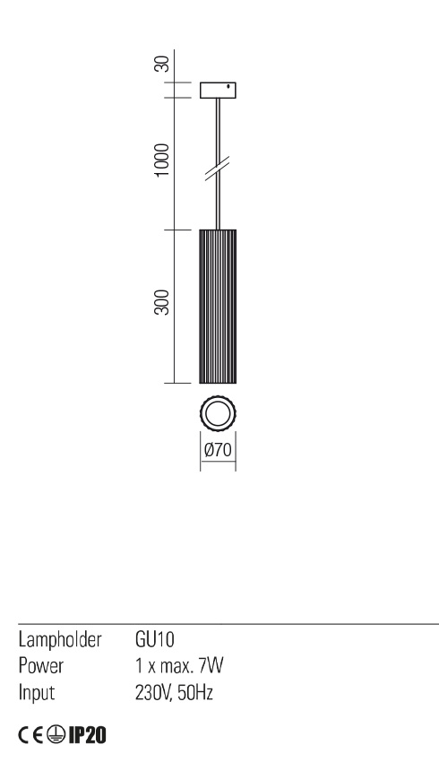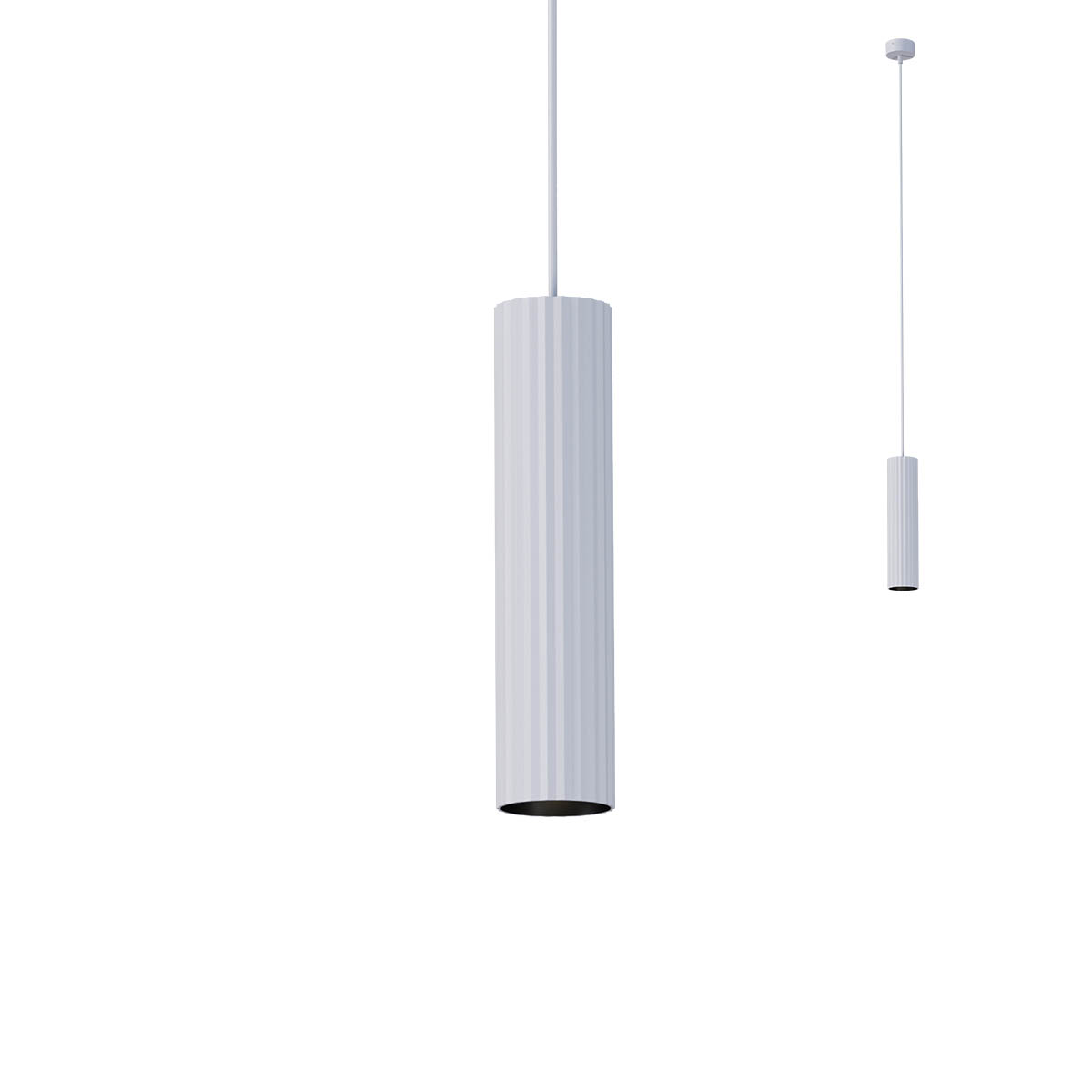 Suspensie pentru interior, structură din metal și aluminiu extrudat, vopsită în câmp electrostatic alb mat la exterior și negru mat la interior.