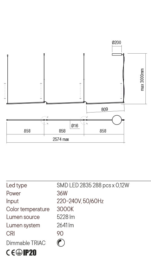 Lustra STICK LED 36W MATT BRASS