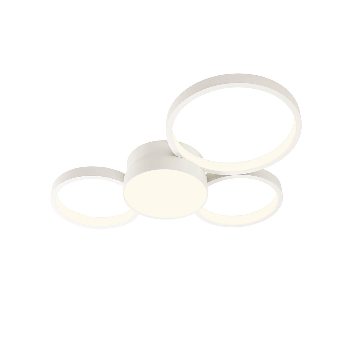 Plafonieră pentru interior echipată cu LED-uri SMD, structură din aluminiu și metal vopsită alb mat, dispersoare din acril alb satinat.