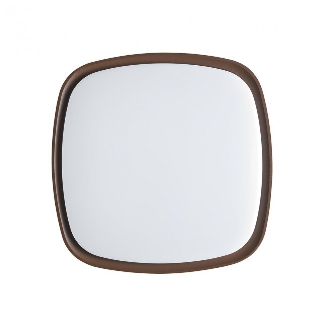 Plafonieră pentru exterior echipată cu LED-uri SMD. Corp din aluminiu turnat sub presiune vopsit în câmp electrostatic culoare maro închis, dispersor din policarbonat opal.